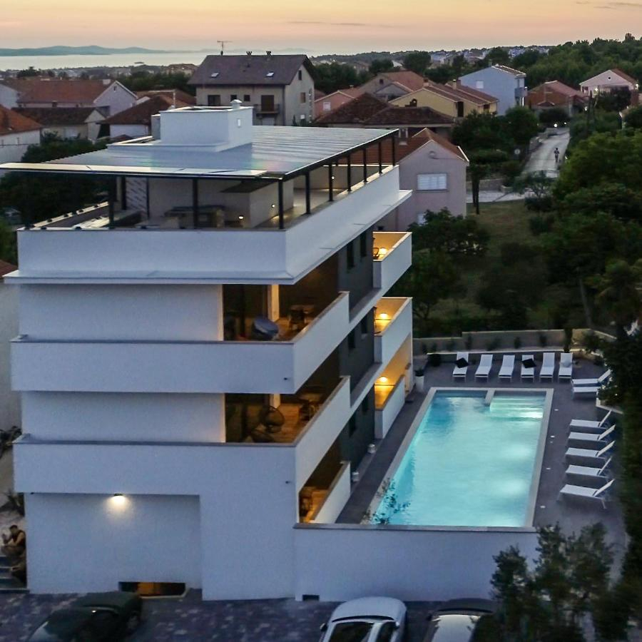 Questa villa in stile Bauhaus, costruita nel 2019, si trova sull'isola di Ugljan. Su 330 m² di superficie abitabile...