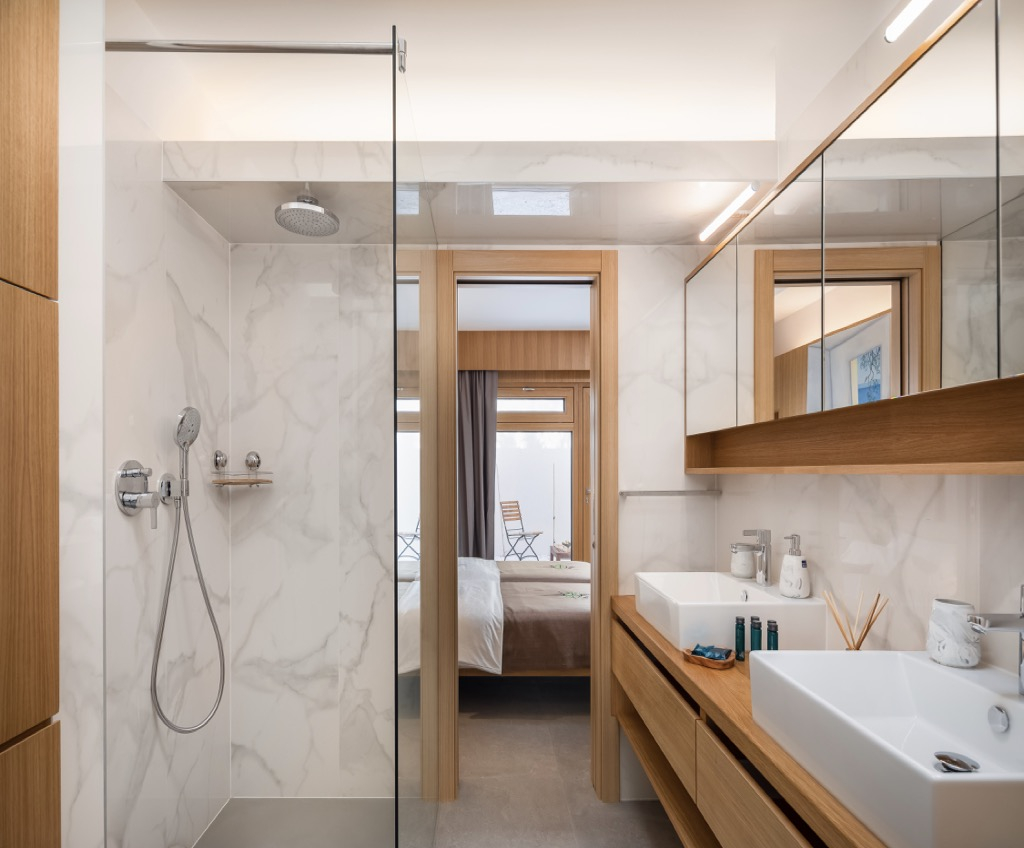 L’aria condizionata e il riscaldamento a pavimento mantengono gli ospiti a proprio agio tutto l’anno, mentre i servizi più moderni, come l’ascensore, garantiscono comodità e accessibilità a tutti.