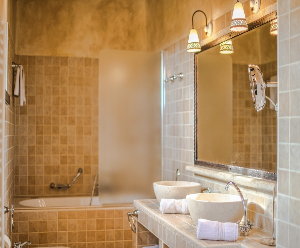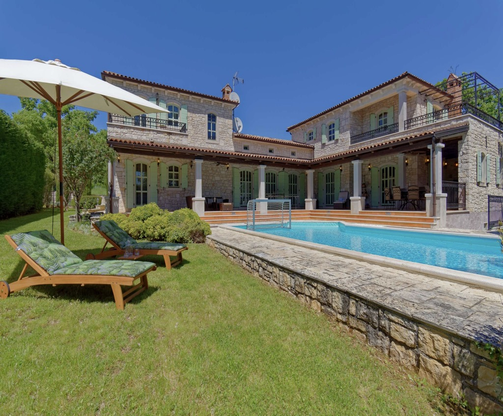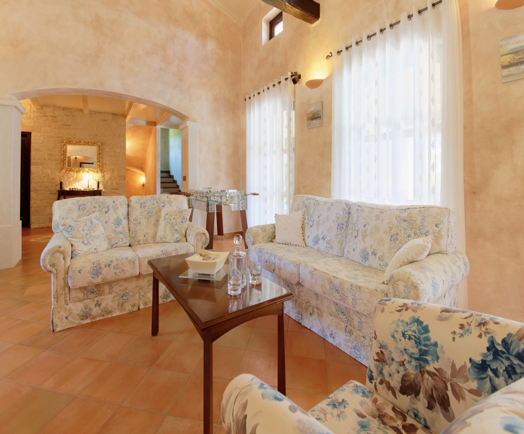 Gli interni sono completamente attrezzati ed eleganti, con 4 ampie camere da letto, 5 bagni e 2 servizi igienici separati.