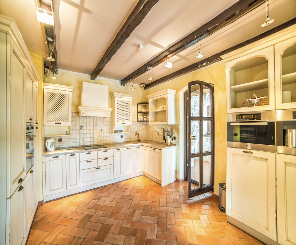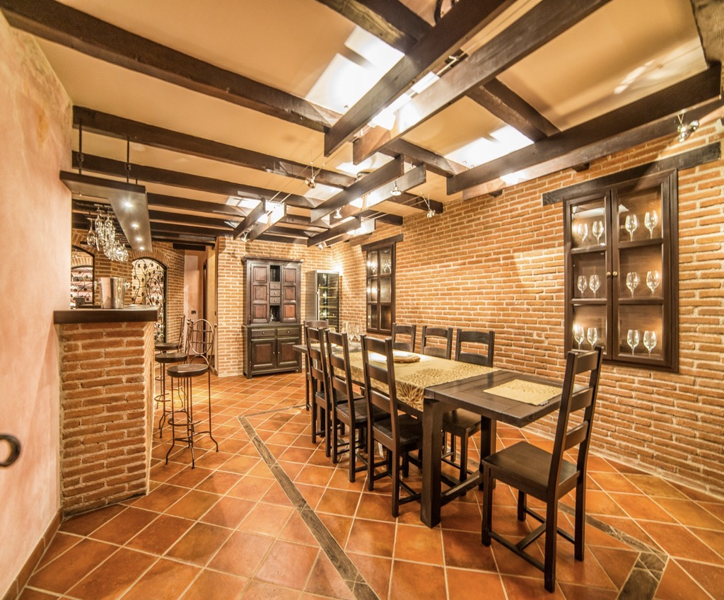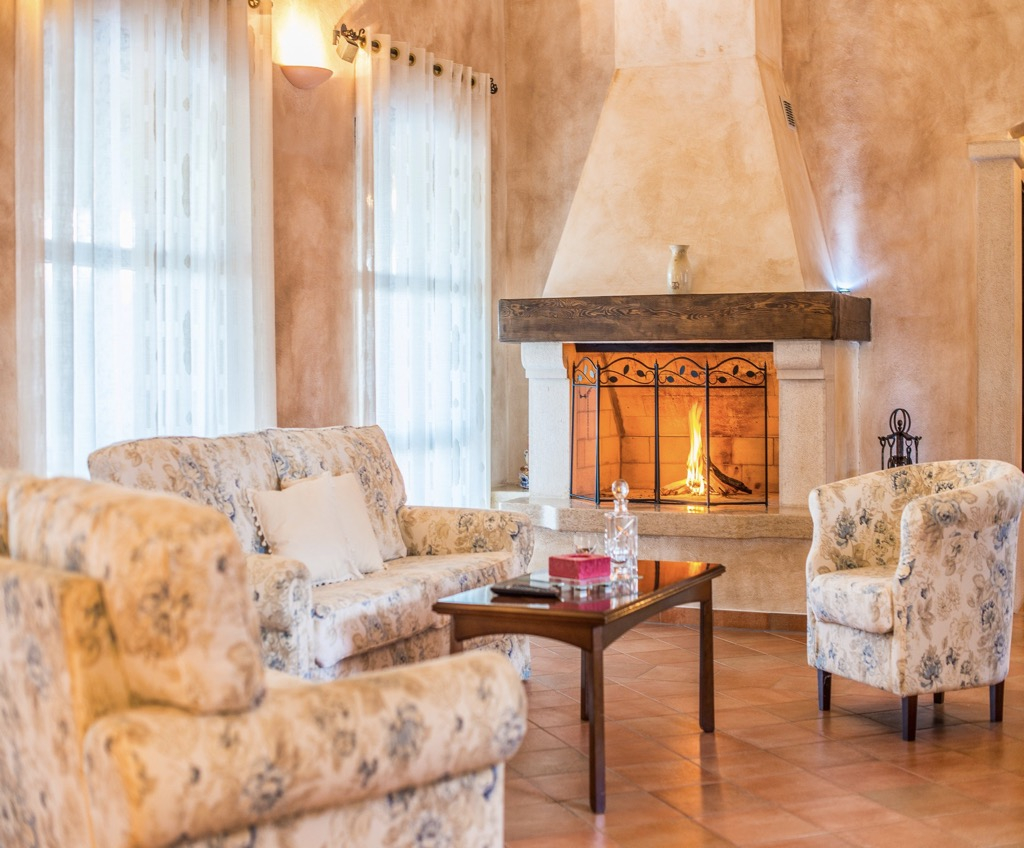 Soffitti alti, pareti in pietra, pavimenti e un enorme camino danno la sensazione di vivere in un castello da favola.