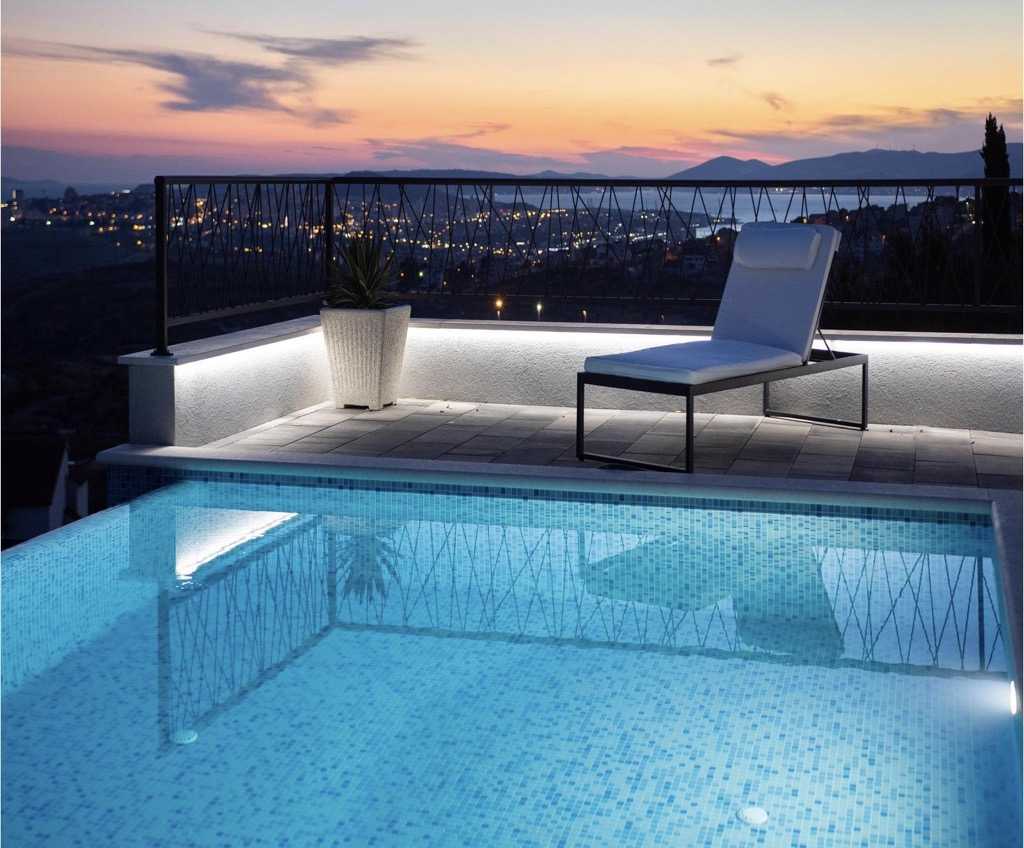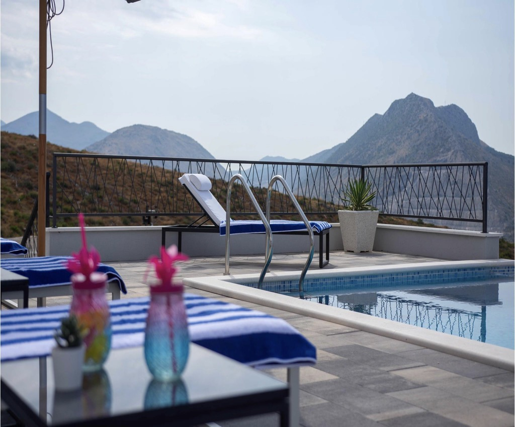 Una splendida e spaziosa piscina sulla terrazza attira l’attenzione, in quanto è perfettamente posizionata per osservare i fantastici tramonti sulla baia e sentirsi nella propria oasi esotica!