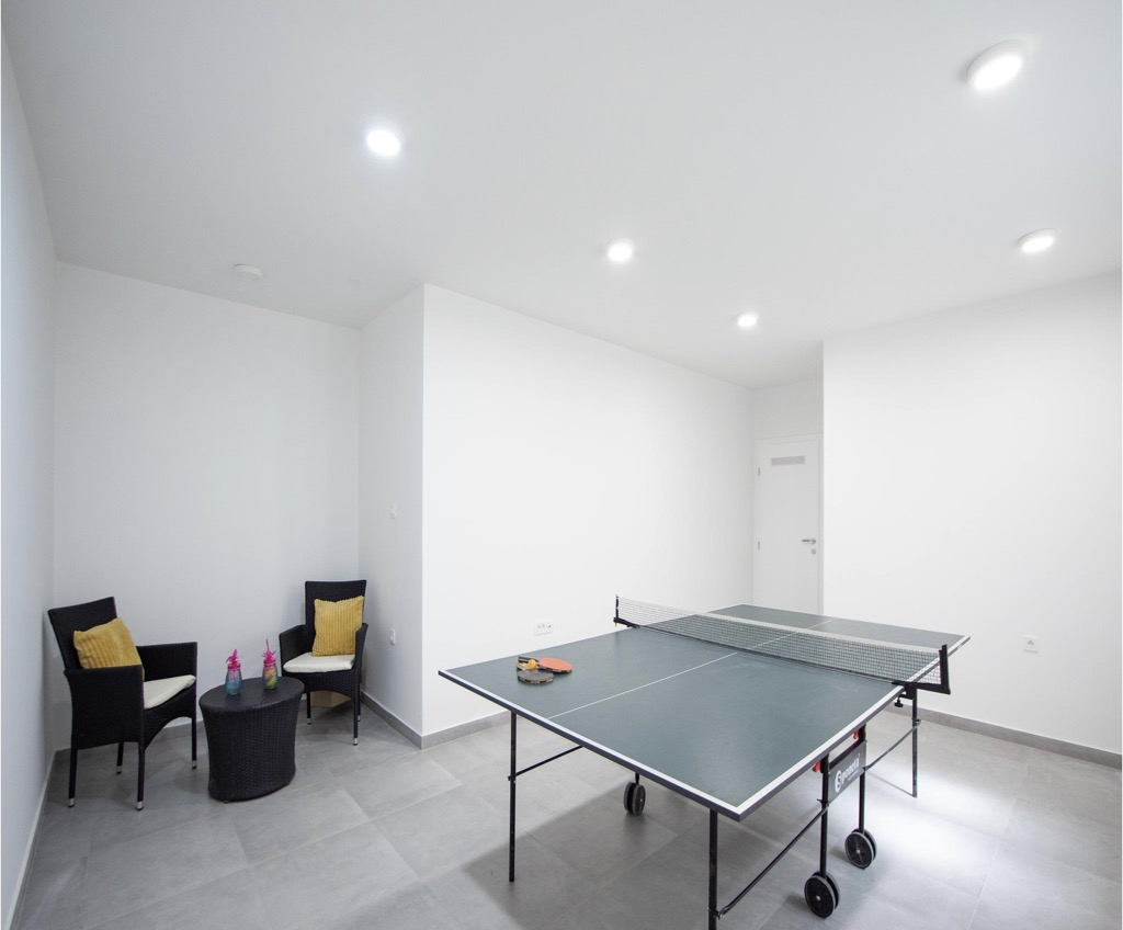 Con una palestra e una sala giochi integrate, questa casa vanta anche un giardino incredibilmente spazioso e funzionale con un’area giochi per bambini.