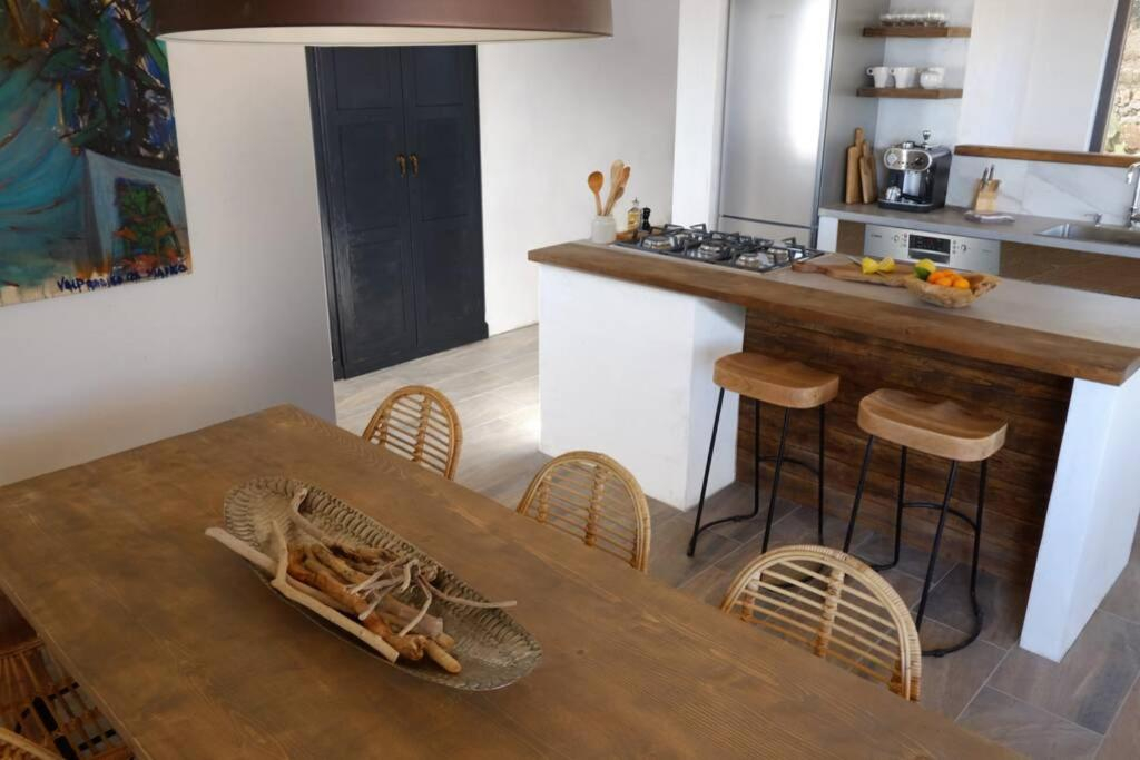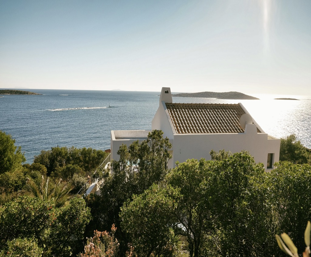 Decorata interamente in bianco con dettagli in pietra che completano il blu del mare sullo sfondo, questa villa a due piani con sei camere da letto ha una superficie totale di 180 m2 e si trova su un terreno di 404 m2.