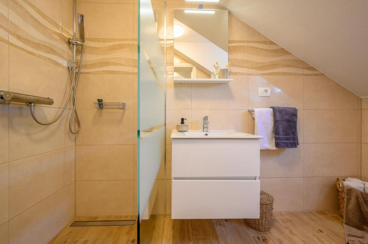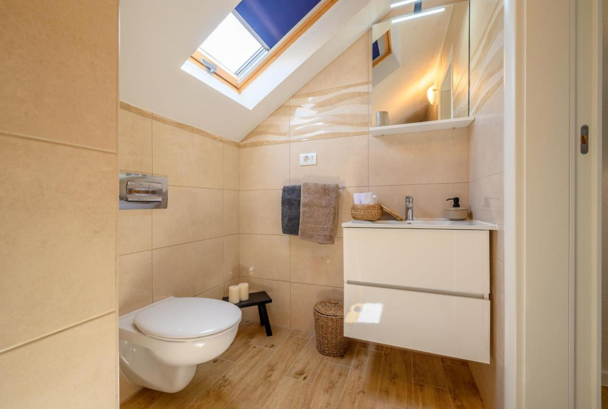 Questa spaziosa casa si trova vicino alla città di Labin e copre una superficie di 215 m². Ha un piano terra e un...