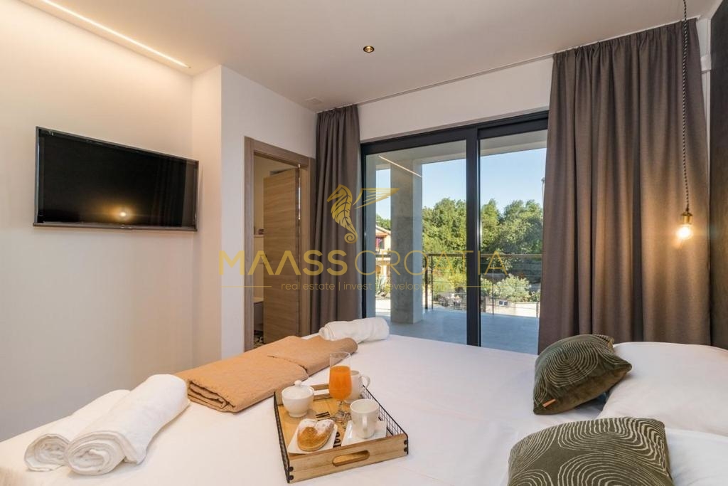 In vendita un’attraente casa vacanze con piscina e una superficie totale di 294 m², non lontano da Medulin, nel piccolo villaggio di pescatori di Ližnjan.