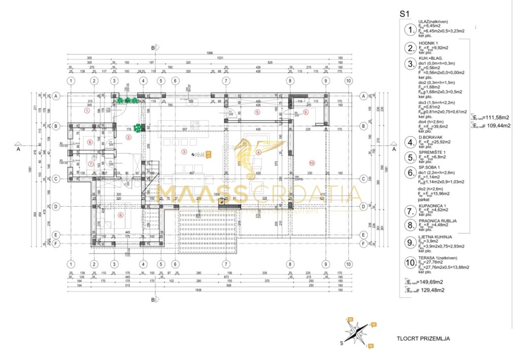 Con la sua struttura a tre piani, la villa ha una superficie abitabile di 225,21 m² e offre molto spazio per una vita confortevole.