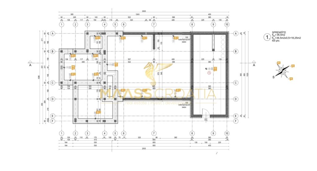 Il seminterrato offre un ampio ripostiglio e una stanza per le attrezzature della piscina, mentre il piano terra e il primo piano sono riservati alla vita quotidiana e al relax.