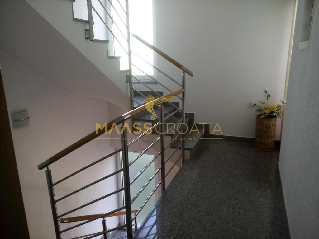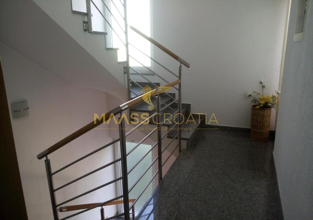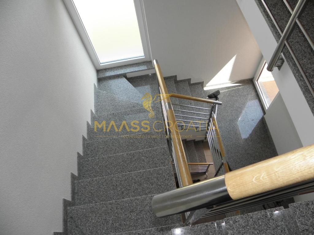 Al primo piano c’è un confortevole appartamento di grandi dimensioni con tre camere da letto con terrazze separate, un ampio soggiorno con cucina adiacente e zona pranzo e accesso a un’ampia terrazza, due bagni e due disimpegni.