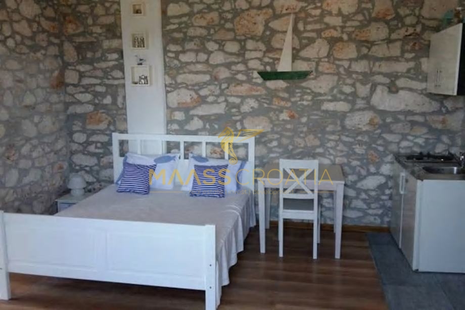 Casa dalmata in pietra del 1905, completamente ristrutturata e rinnovata nel 2015. Nel corso della ristrutturazione, tre dei quattro appartamenti sono stati completamente attrezzati e arredati, mentre il quarto appartamento, che si trova in mansarda, non è ancora stato completato. Questo appartamento può quindi essere ancora arredato dal nuovo proprietario secondo i propri desideri e le proprie idee!