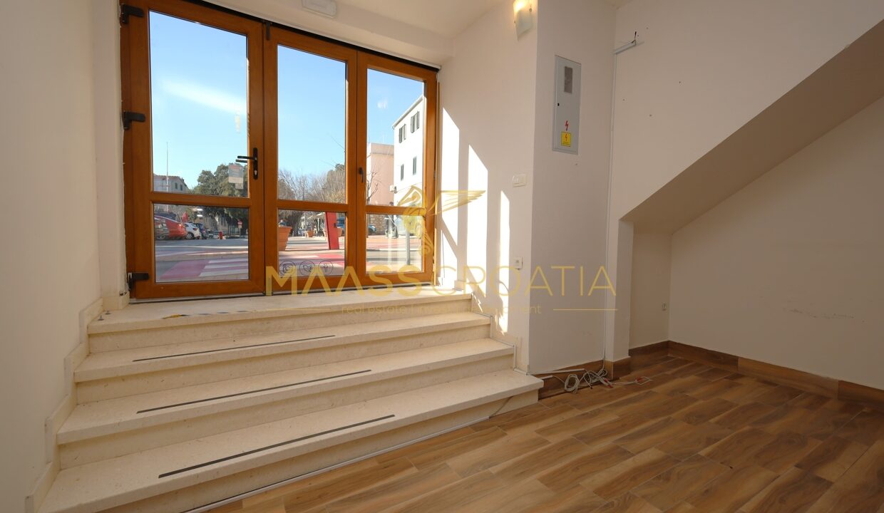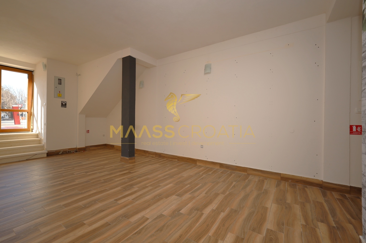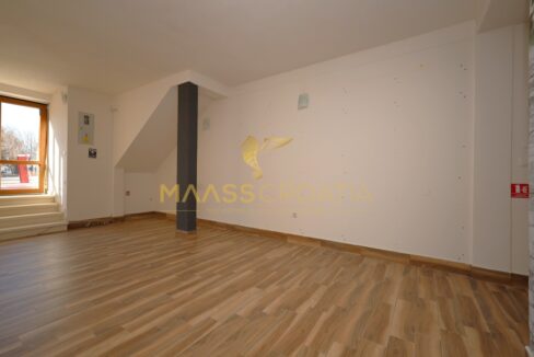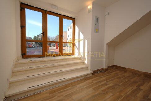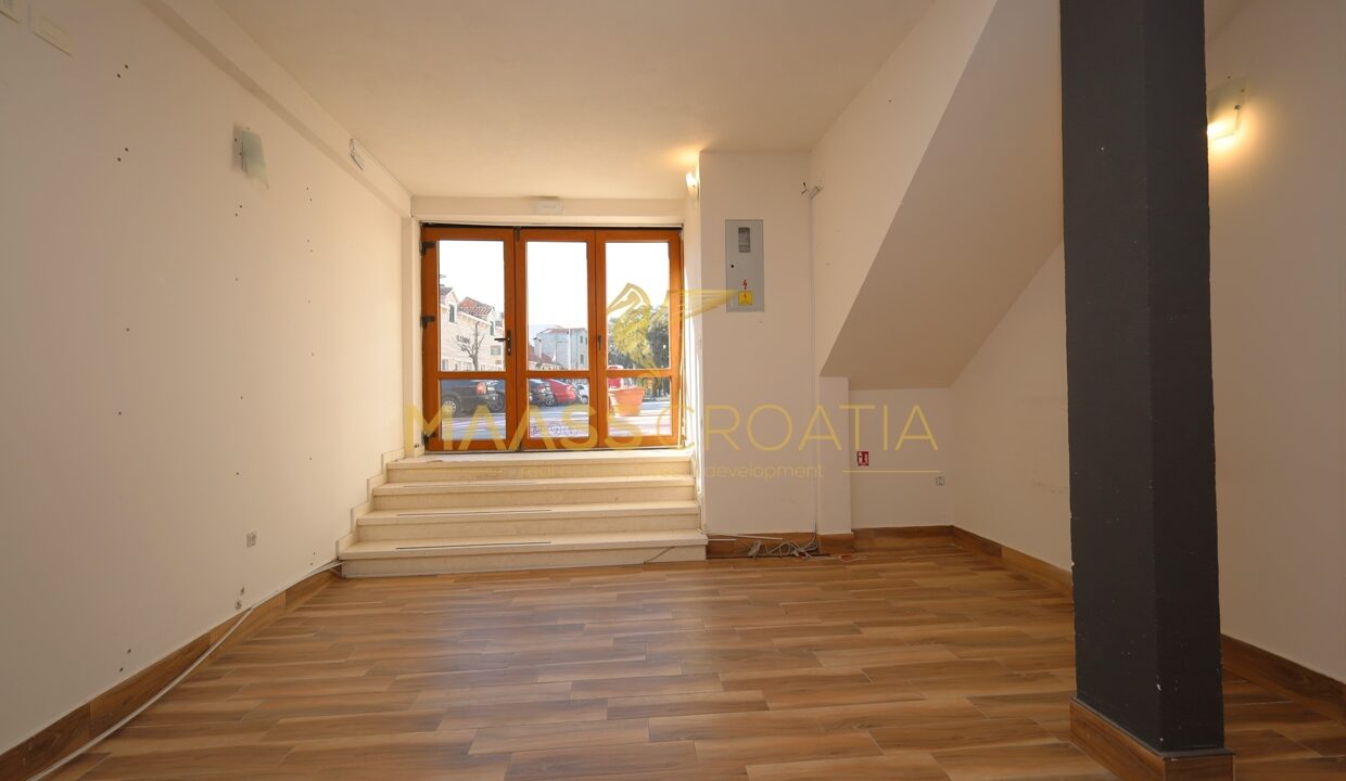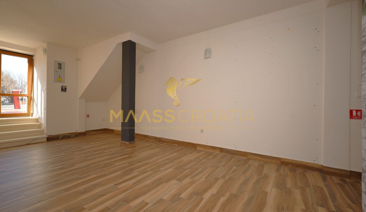Al piano terra si trova uno spazio commerciale di 46,6 m², mentre l’appartamento a tre piani di 123,5 m² si estende al 1° piano, al 2° piano e al sottotetto.