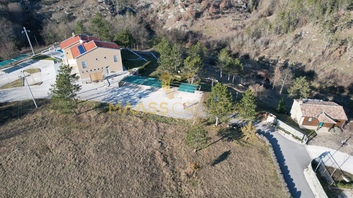 All’esterno si trovano una piscina con vasca idromassaggio all’aperto e ampio solarium, una grande terrazza, un camino esterno, un parco giochi per bambini e un parcheggio per diversi veicoli.