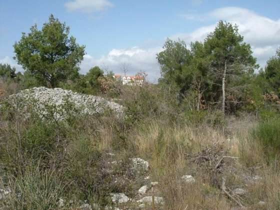 Das ca. 7.855m² große Grundstück besteht aus drei Parzellen, die auch einzeln gekauft werden können. Die Größen betragen dabei 1.130 m², 1.204 m² und 5.521 m². Das gesamte Land wird von einer Natursteinmauer begrenzt und ist zum Großteil mit mediterranem Pinienwald bewachsen. Der Blick schweift über nahezu unberührte Natur. Das Grundstück liegt sehr ruhig, am Rande der Bauzone, etwa 1 km vom Ortszentrum entfernt, wo man auch nächste Einkaufsmöglichkeiten, Restaurants und Cafés findet. Strom- und Fernwasseranschluss sind in der Nähe. Die Entfernung zum Meer beträgt ebenfalls ca. 1 km.