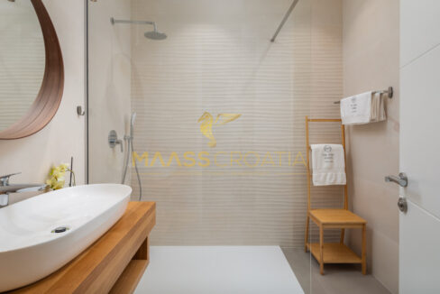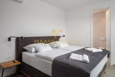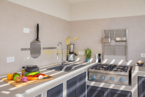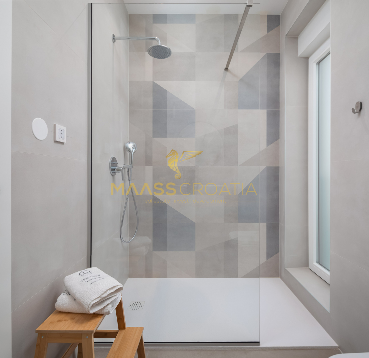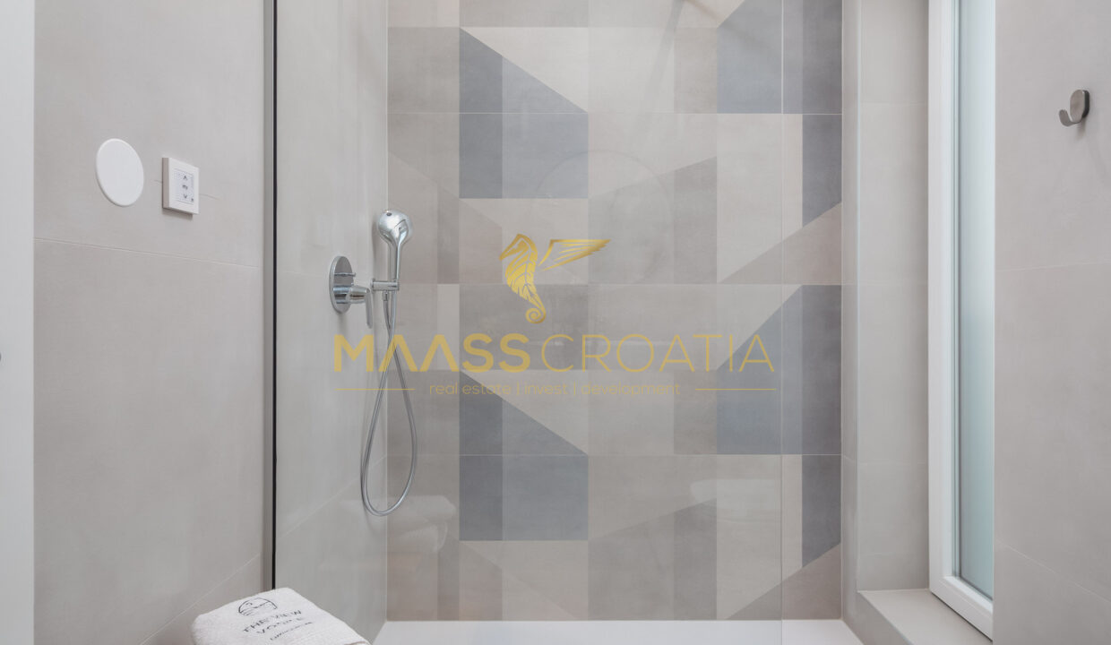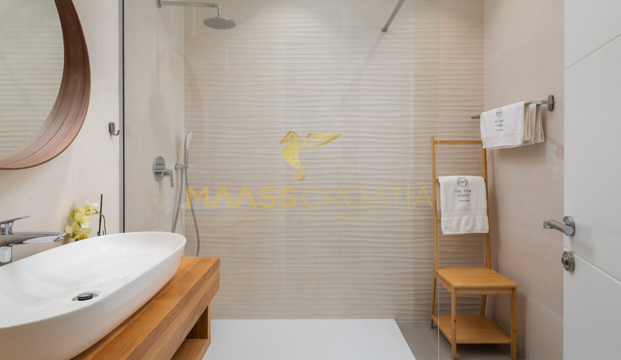 Una scala interna conduce al 1° piano, composto da 3 camere da letto, ognuna con il proprio bagno, di cui la camera da letto principale ha accesso a un’ampia terrazza con vista sul mare.