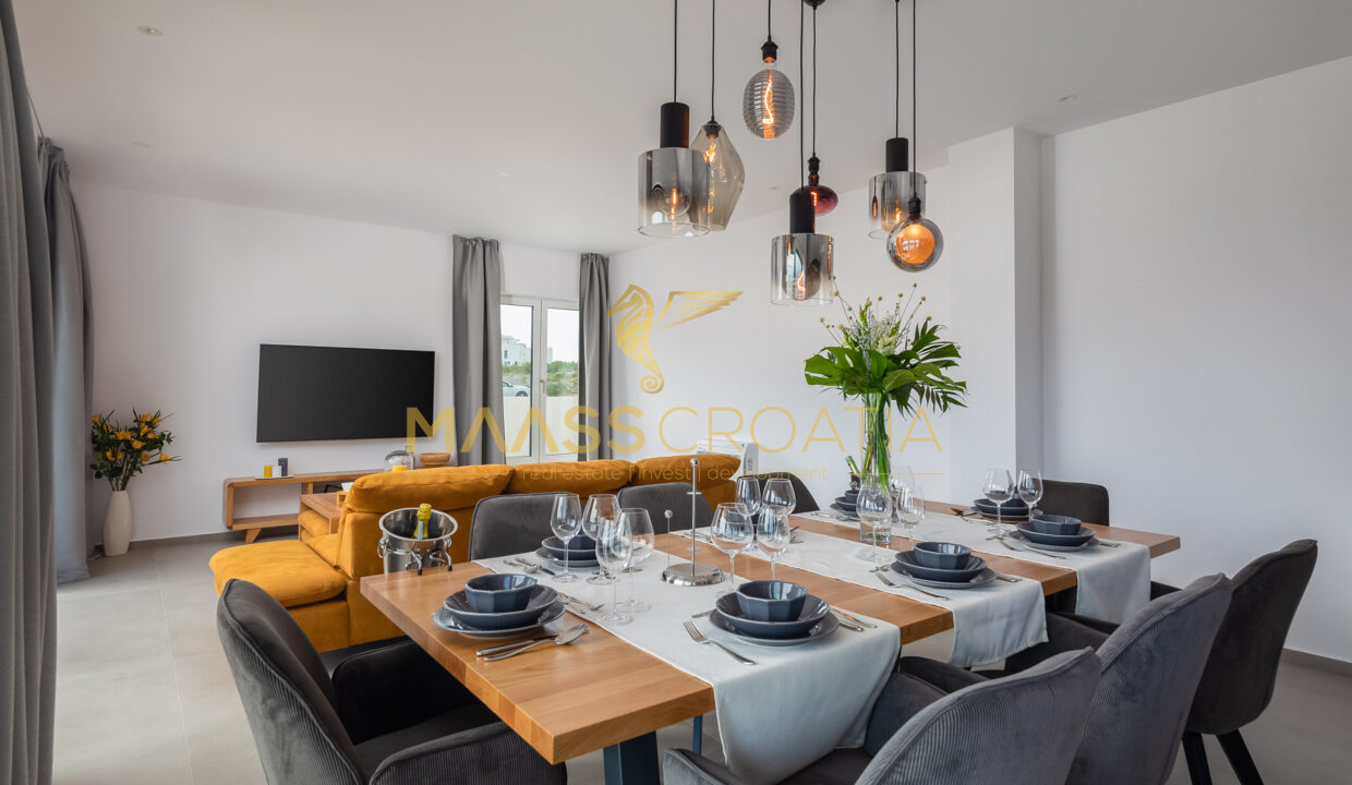 La villa è completamente arredata e ottimamente attrezzata, i mobili e le attrezzature sono inclusi nel prezzo. Distanza dal mare 1.000 m, dal centro 1.400 m.