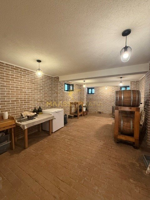 Il piano seminterrato, accessibile tramite una scala esterna separata, ospita una spaziosa taverna con cucina, zona pranzo e un’ampia sala a pianta aperta, ideale per serate sociali, hobby creativi, fitness o come ulteriore area per gli ospiti.