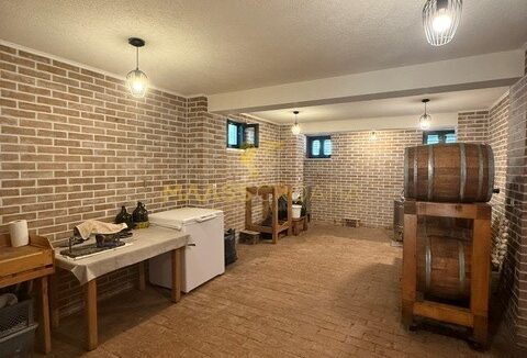 Il piano seminterrato, accessibile tramite una scala esterna separata, ospita una spaziosa taverna con cucina, zona pranzo e un’ampia sala a pianta aperta, ideale per serate sociali, hobby creativi, fitness o come ulteriore area per gli ospiti.