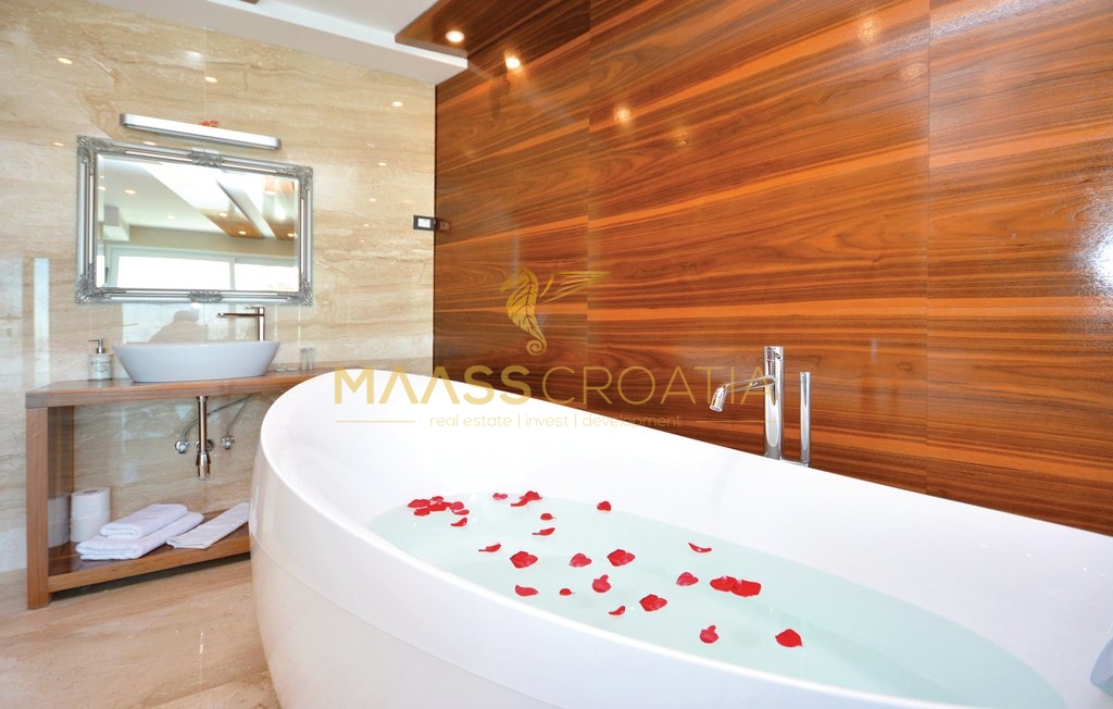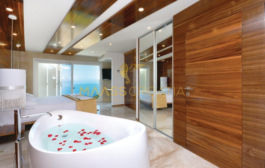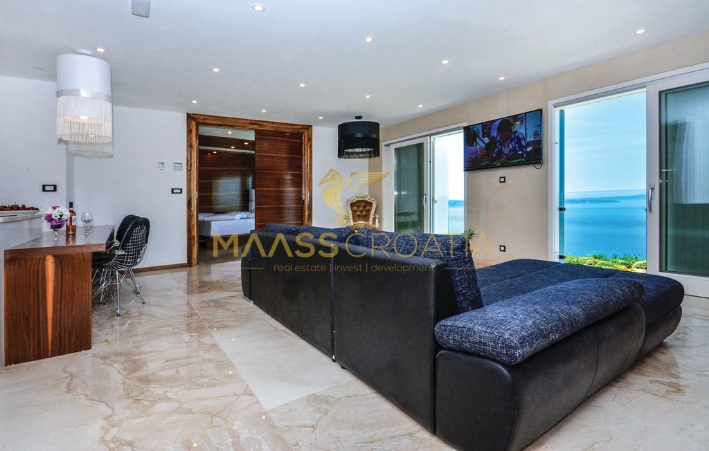 Questa speciale e bellissima, lussuosa villa con piscina a Podstrana ha una splendida vista sul mare, sulle isole e sulla città di Spalato grazie alla sua eccellente posizione.