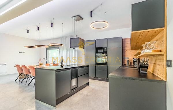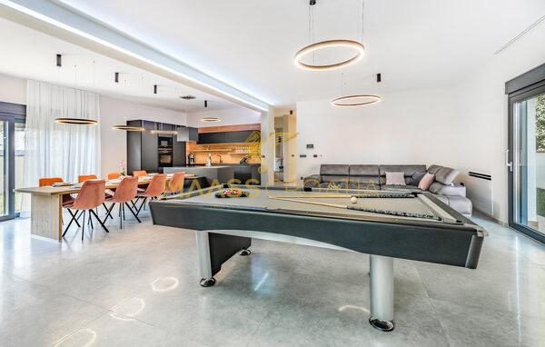 La lussuosa villa è stata costruita e attrezzata secondo uno standard estremamente elevato – con riscaldamento a pavimento, pompe di calore, facciata termica, pannelli solari, piastrelle in ceramica, mobili ed elettrodomestici. È in fase di completamento.