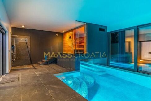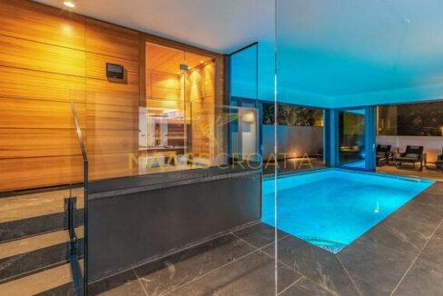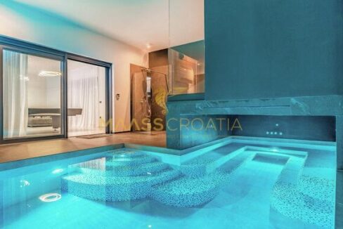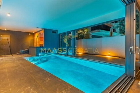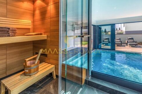 È composta da un ampio soggiorno con cucina e zona pranzo, una camera da letto, una sauna con doccia e una piscina interna/esterna al piano terra.