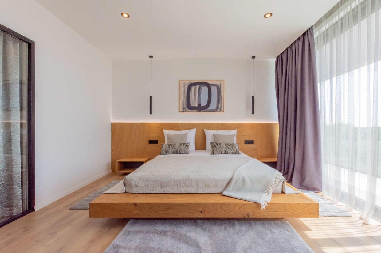 La villa ha un interno spazioso con una superficie abitabile di 320 m2. Con 4 camere da letto e 6 bagni, c’è molto spazio per famiglie numerose o gruppi di amici. Il soggiorno e la sala da pranzo a pianta aperta sono perfetti per intrattenere gli ospiti e offrono una splendida vista sulla campagna circostante grazie alle ampie finestre.