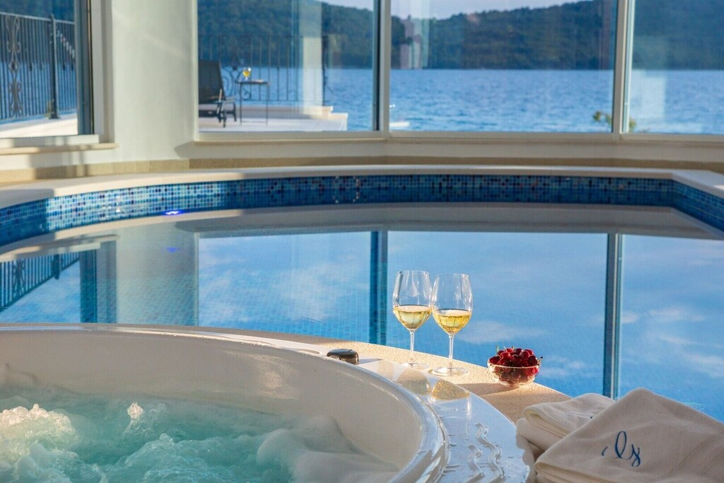 Questa splendida villa a due piani di 1005 m2 fronte mare si trova su un terreno lussureggiante di 2600 m2.