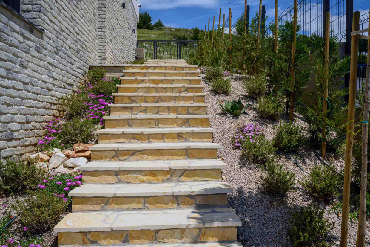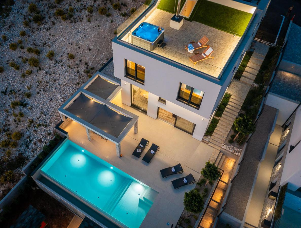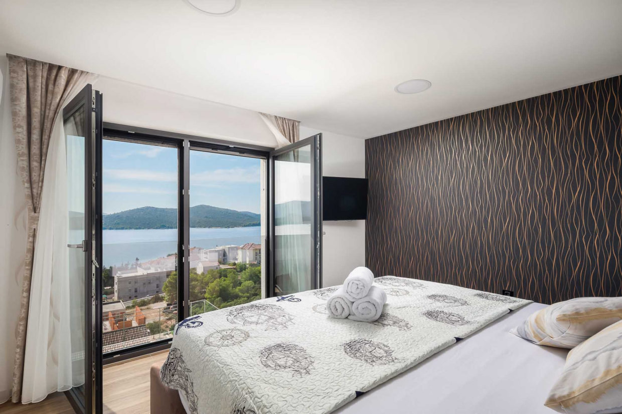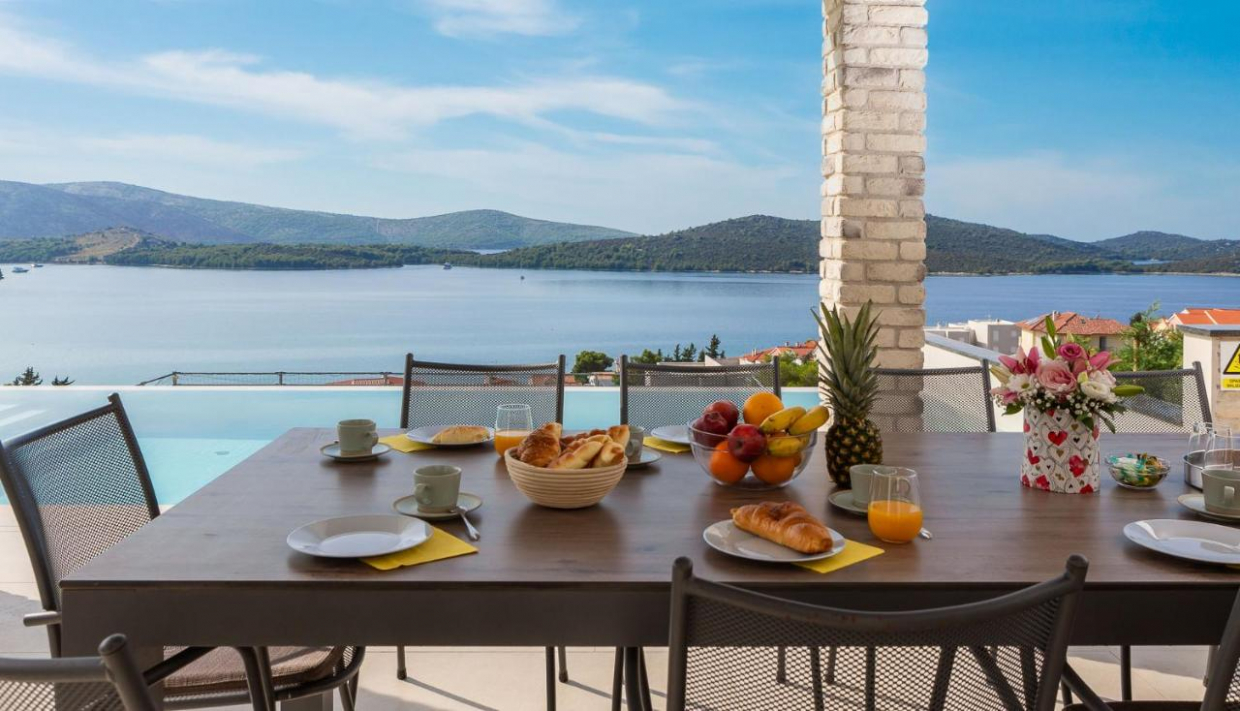 Atemberaubender Meerblick von Haus und Pool: Wunderschöne Steinvilla auf einem Hügel