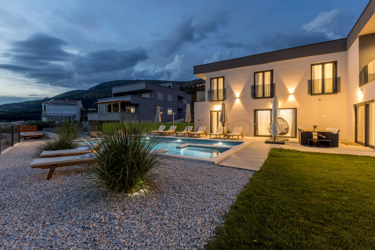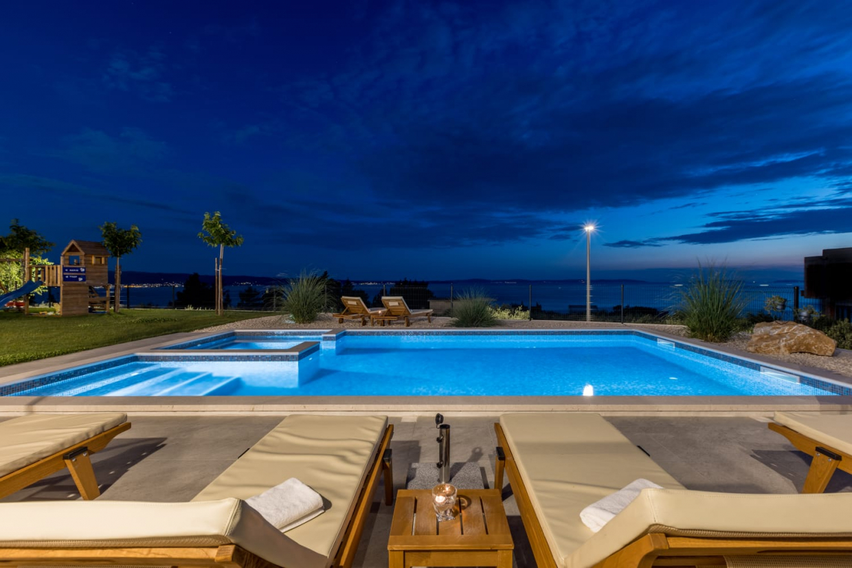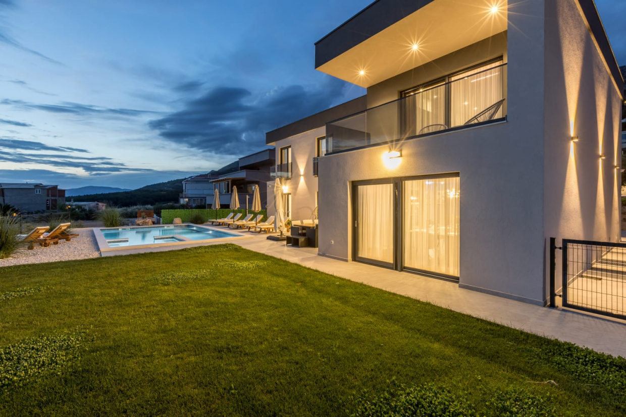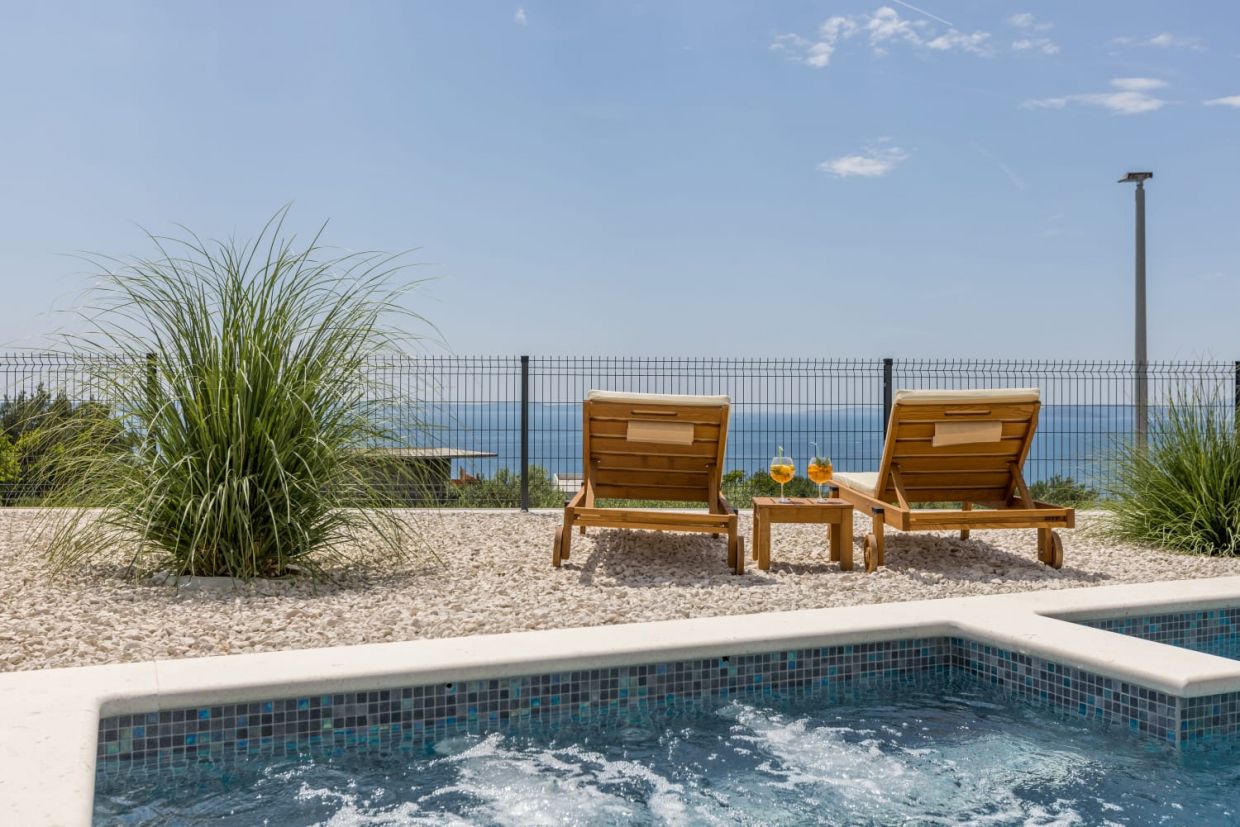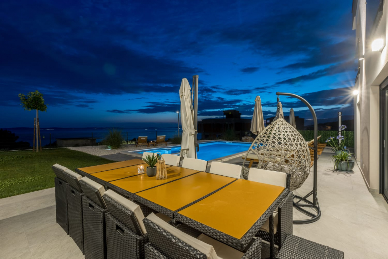 In una posizione tranquilla, una villa dal design e dall'architettura moderni con vista sul mare. La superficie utile...