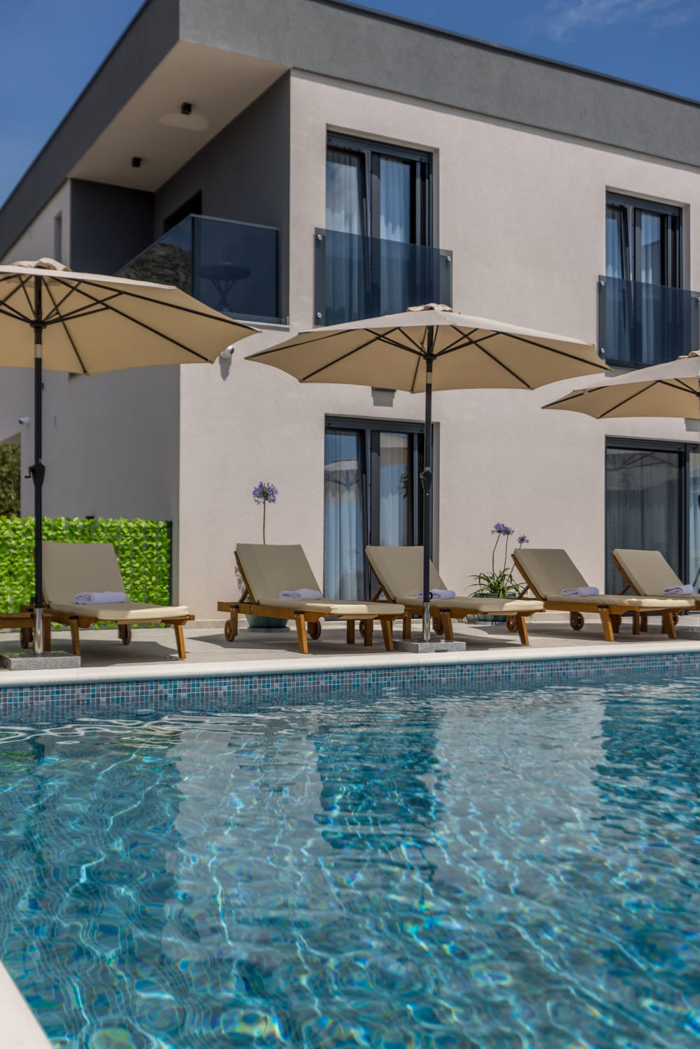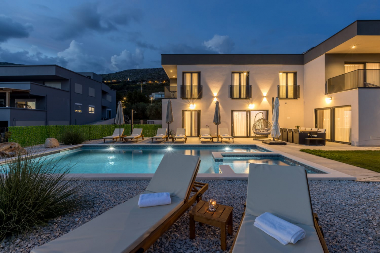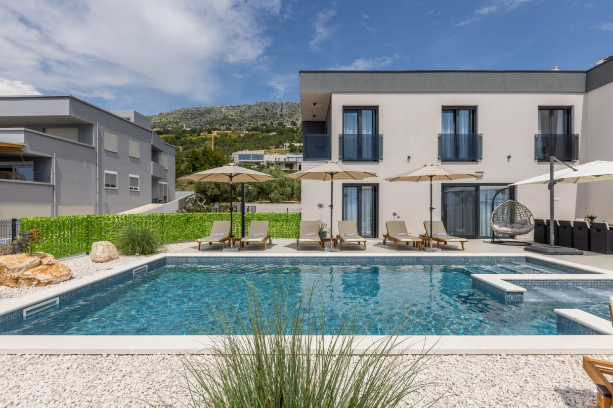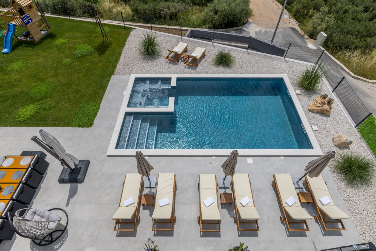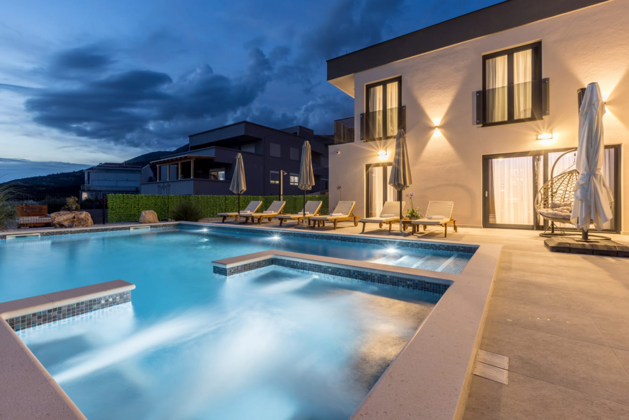 In una posizione tranquilla, una villa dal design e dall'architettura moderni con vista sul mare. La superficie utile...