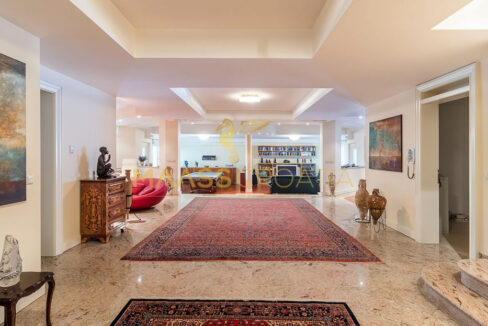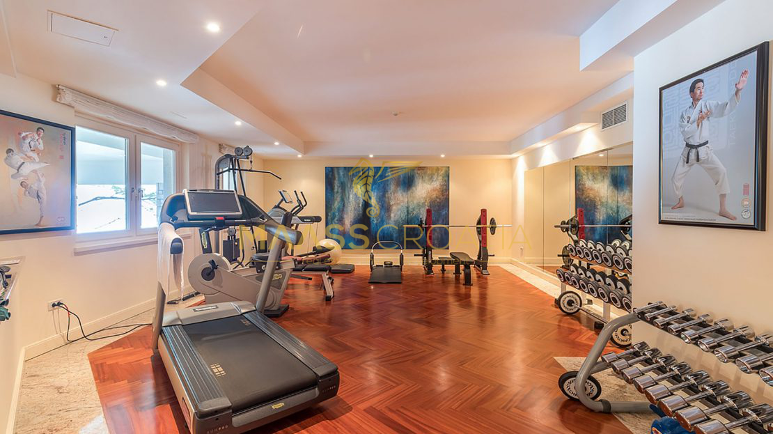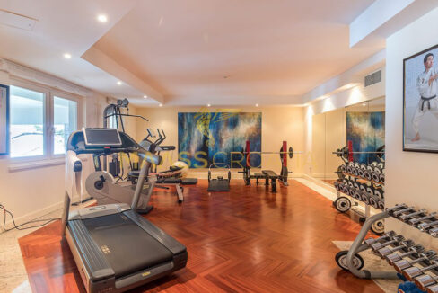 Nel seminterrato si trovano una cantina, una palestra, una sauna, una sala da biliardo e un ripostiglio.