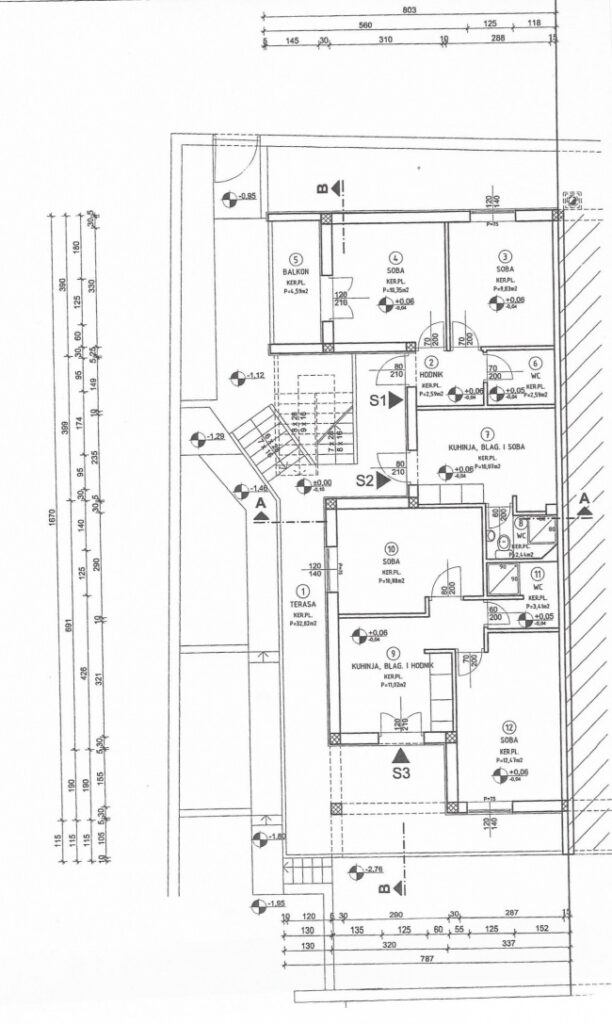 – Monolocale (S2), composto da un soggiorno/camera da letto con bagno.