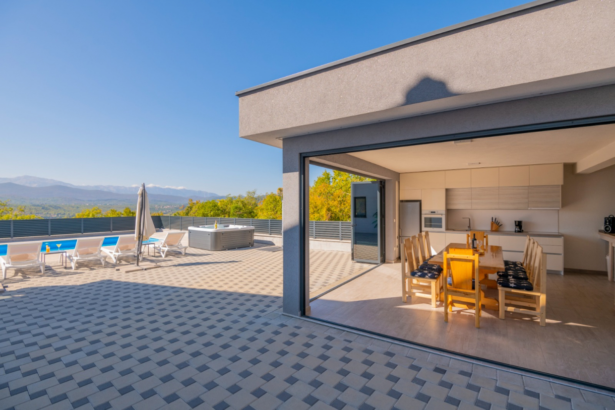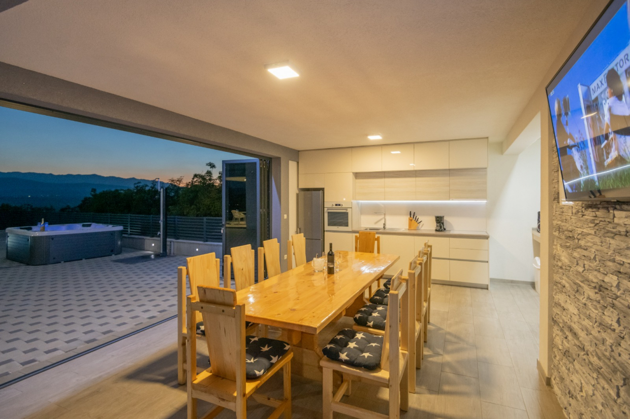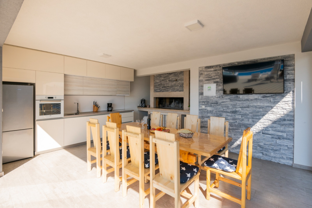 Sulla terrazza potrete godervi la vasca idromassaggio e cenare all’aperto con la cucina esterna, ideale per tutte le riunioni estive con la famiglia e gli amici!