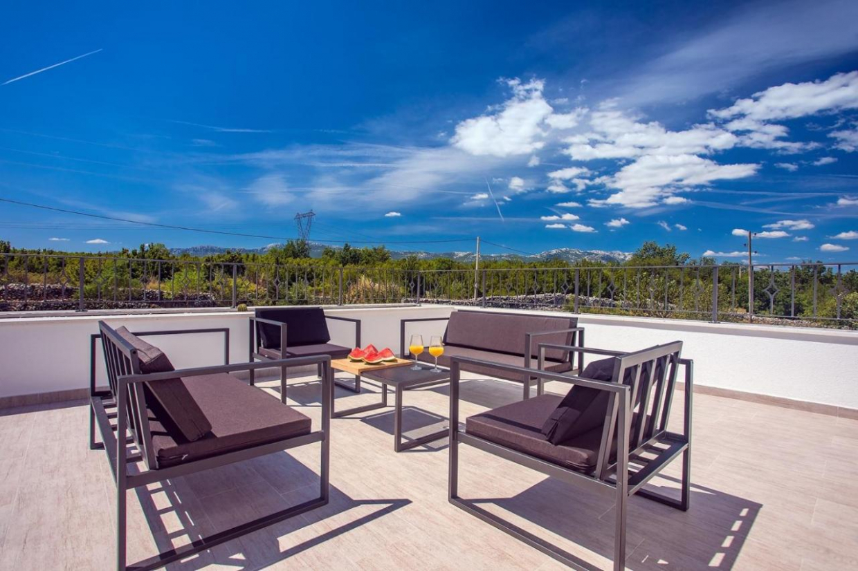 La terrazza esterna si trova sotto la costruzione del secondo piano ed è anche il tetto.