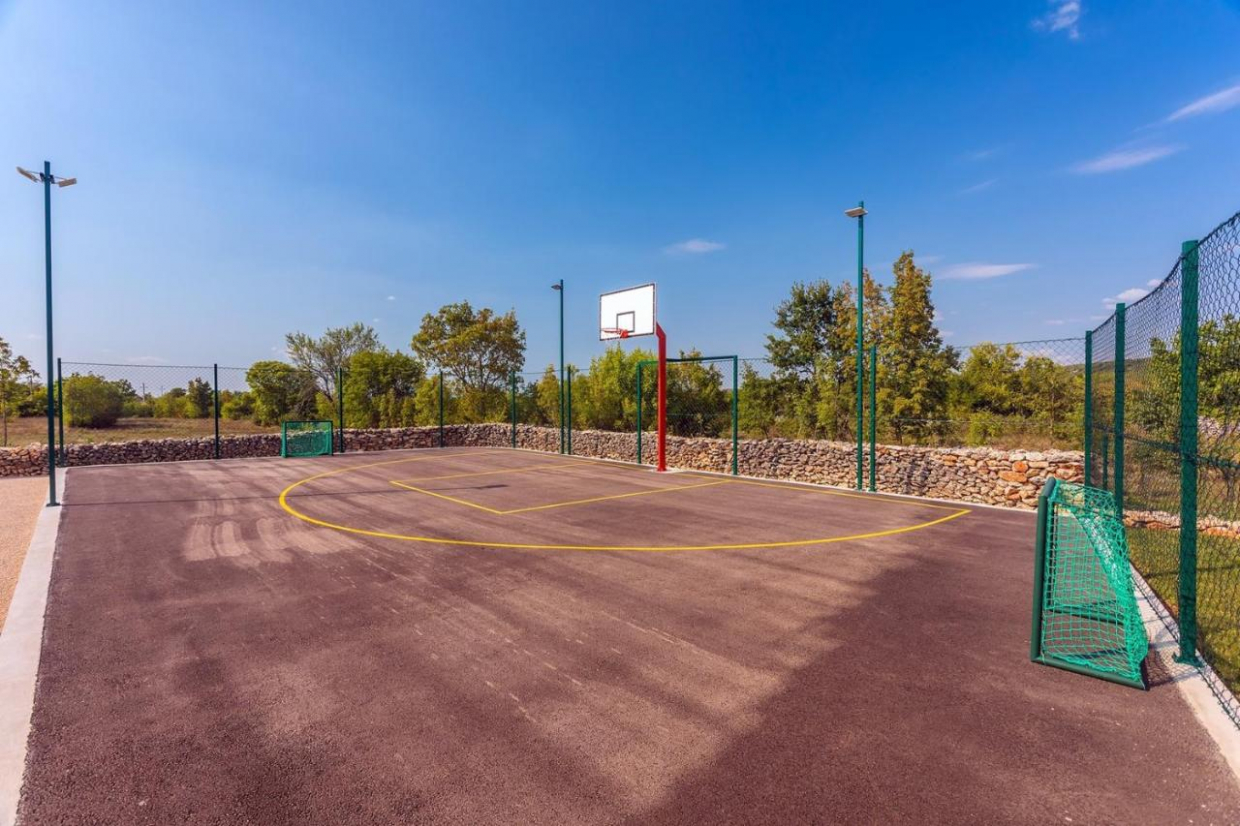 Questa proprietà vi colpirà per la presenza di un campo da basket, di un parco giochi e di una palestra all’aperto.
