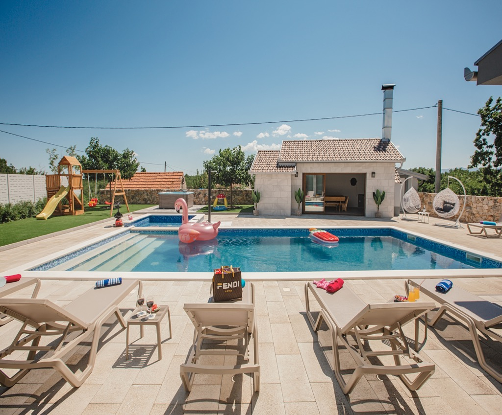 Oltre a questa casa già splendida, c’è un’ulteriore casetta da giardino accanto alla piscina che potrete utilizzare per le divertenti serate estive e gli intrattenimenti.
