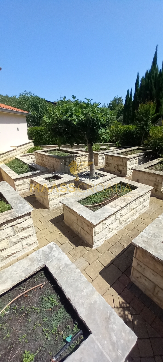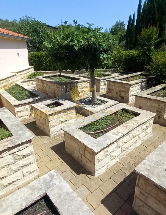 L’intera area esterna è ben curata e paesaggistica, sono stati piantati alberi da frutto e ulivi, il prato è stato sistemato, i sentieri sono stati pavimentati e un’area con letti rialzati in mattoni rende facile la coltivazione di ortaggi e il giardinaggio hobbistico sul retro.