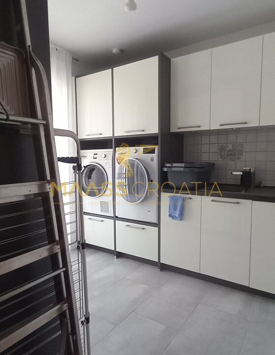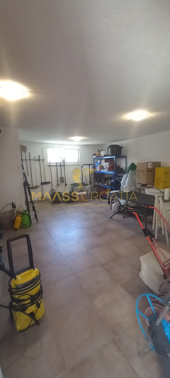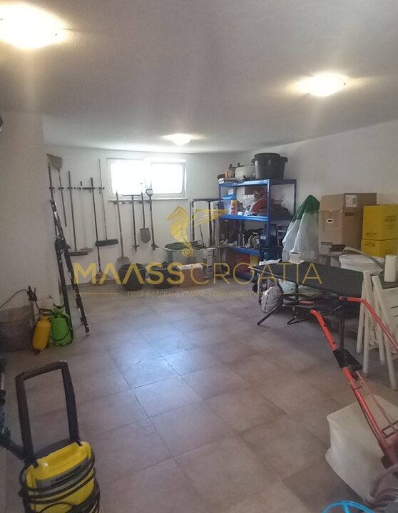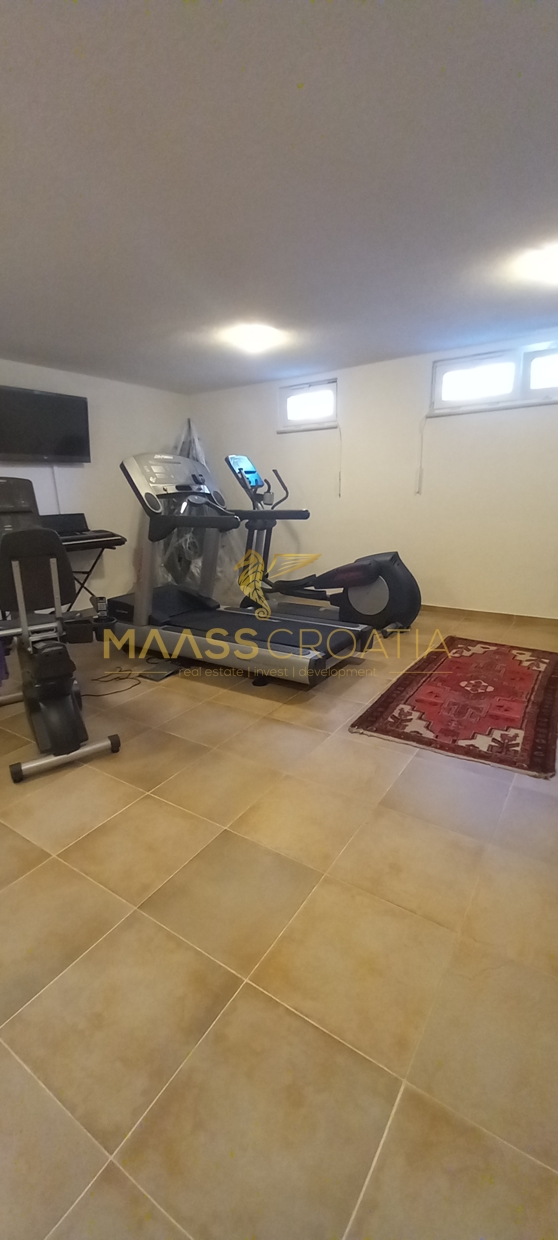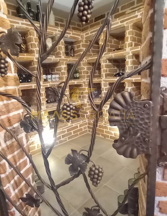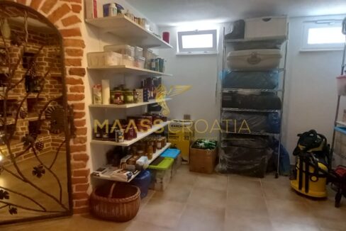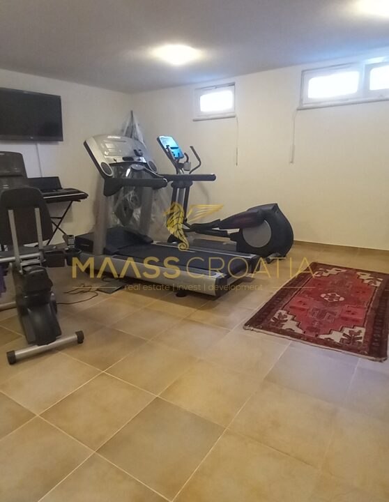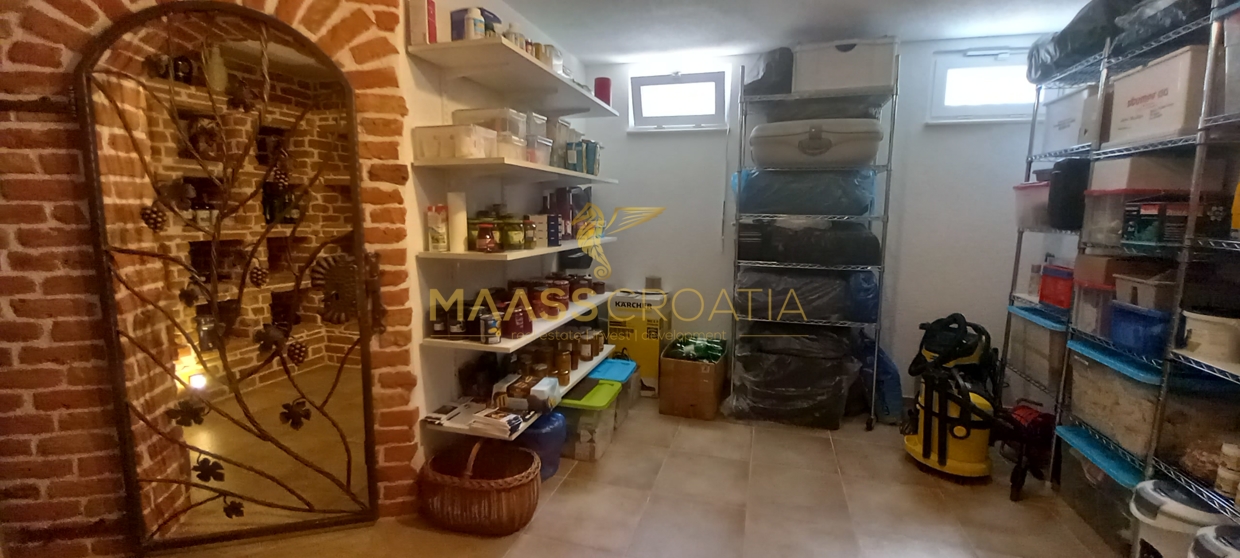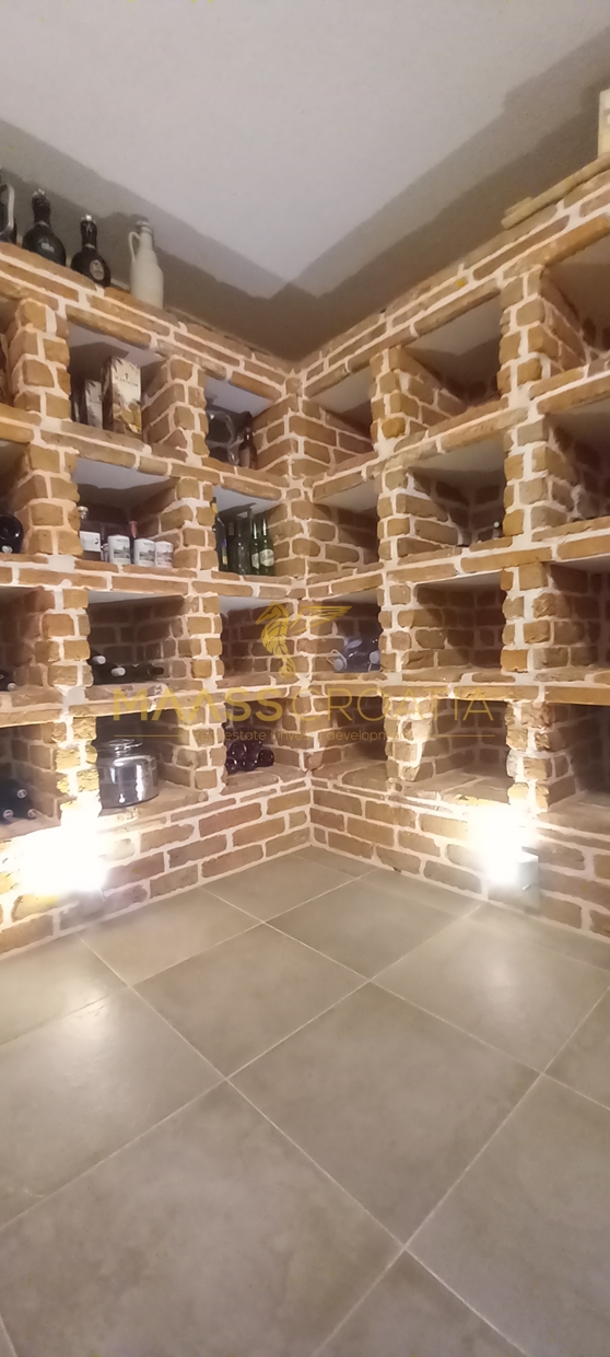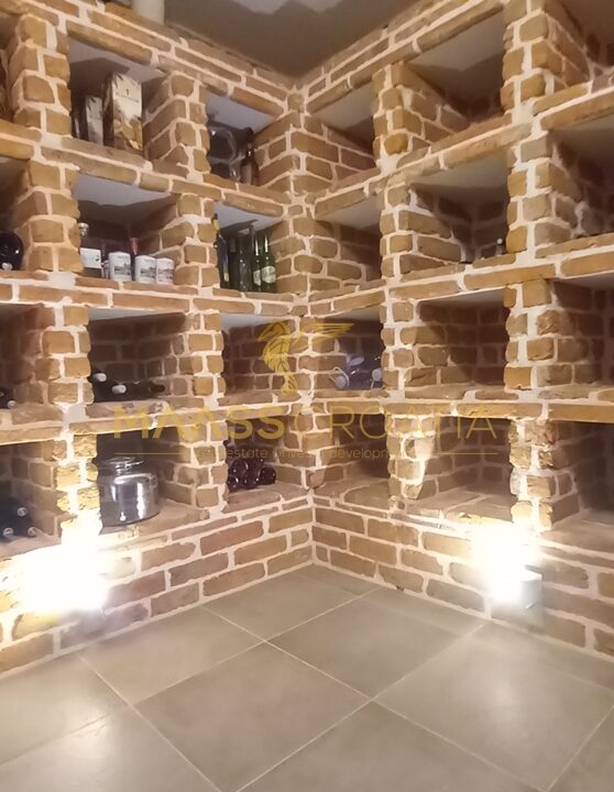 Anche il seminterrato, una rarità in Croazia, offre alcuni extra. C’è una sala fitness, dei ripostigli, un magazzino con una cantina che dovrebbe mandare in visibilio tutti i bevitori di vino e, infine, una cantina per feste con cucina, impianto musicale e un forno per barbecue in muratura!