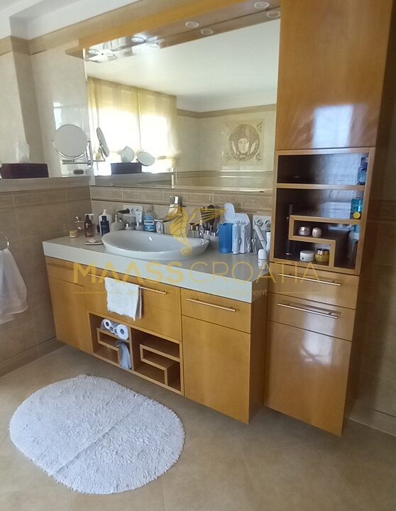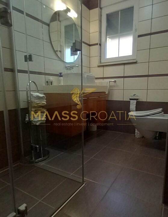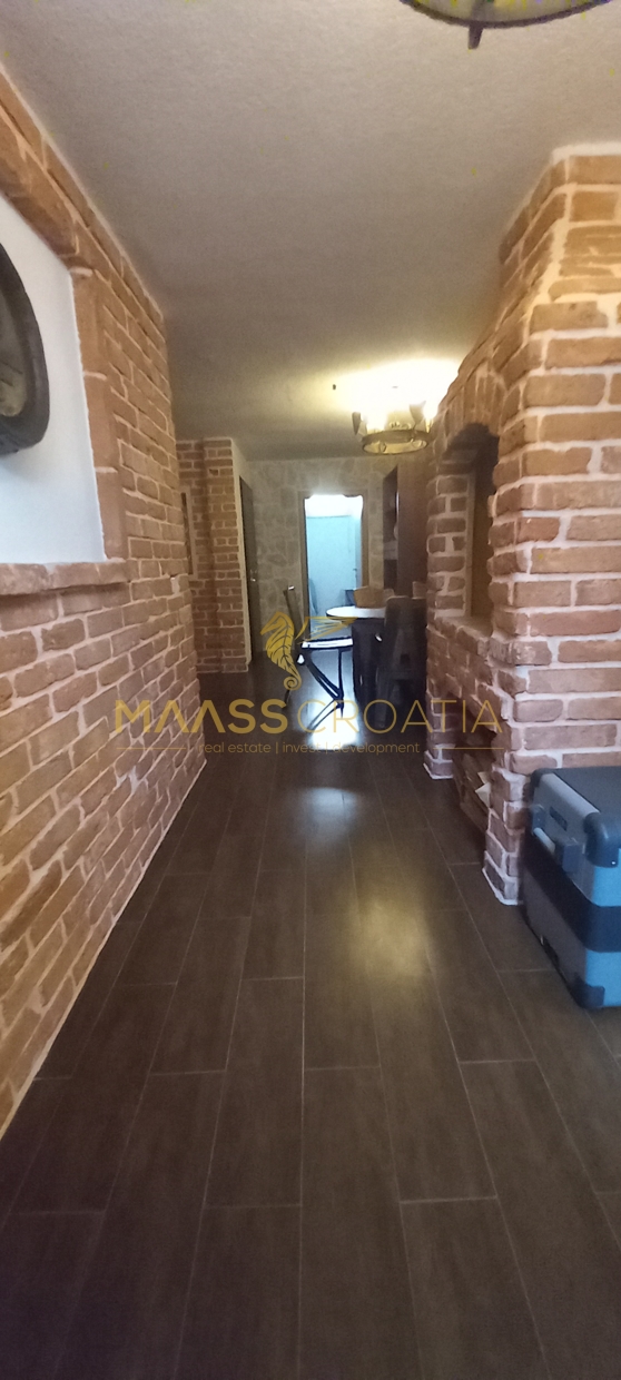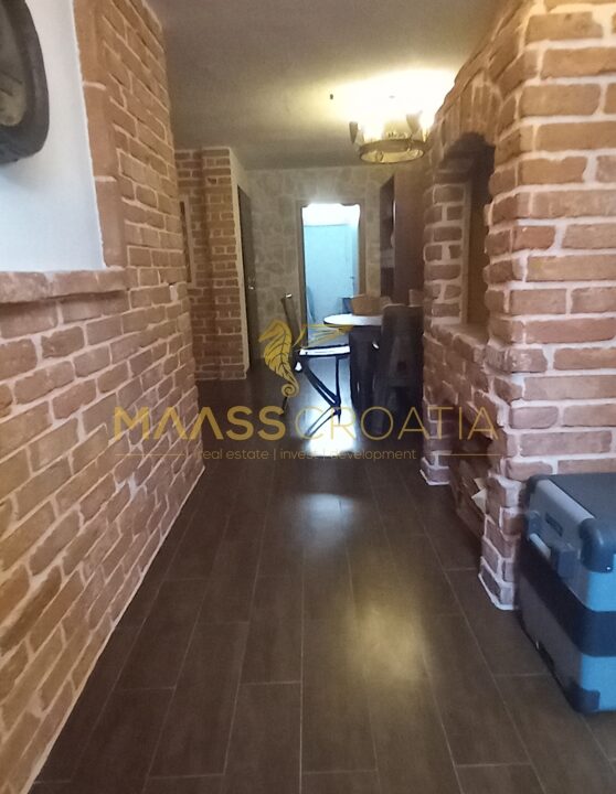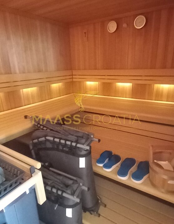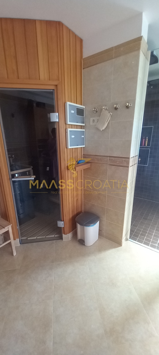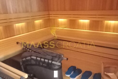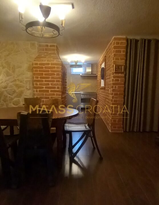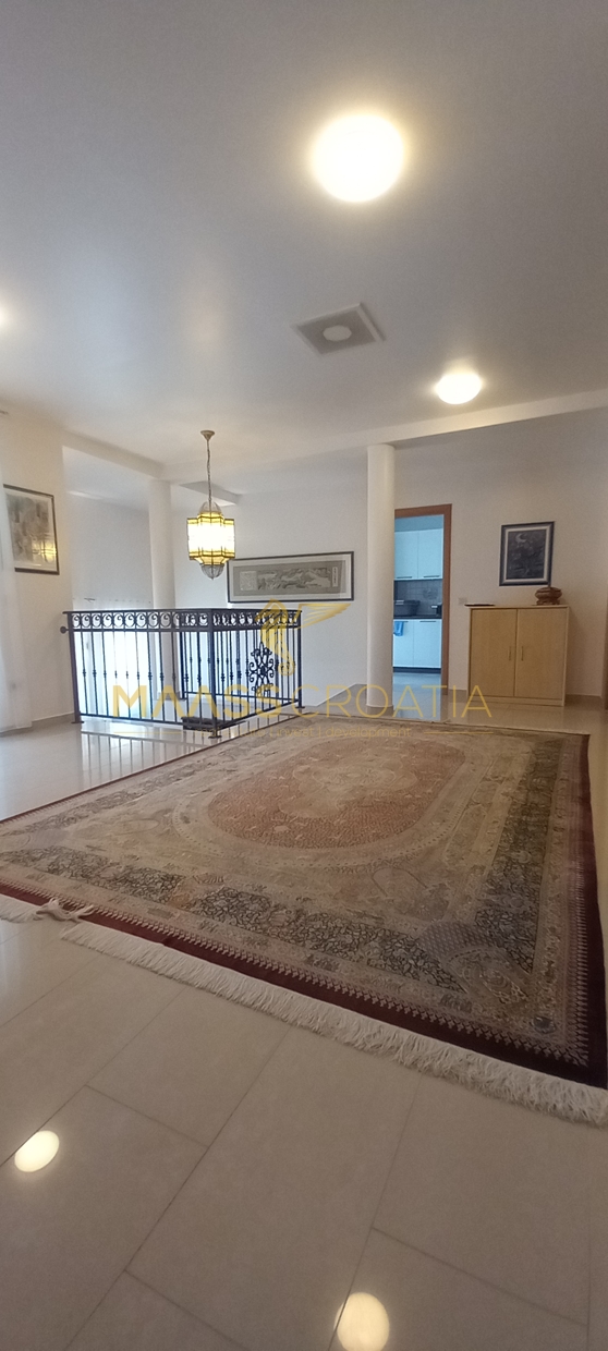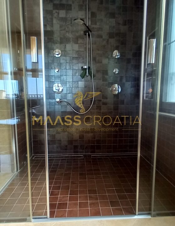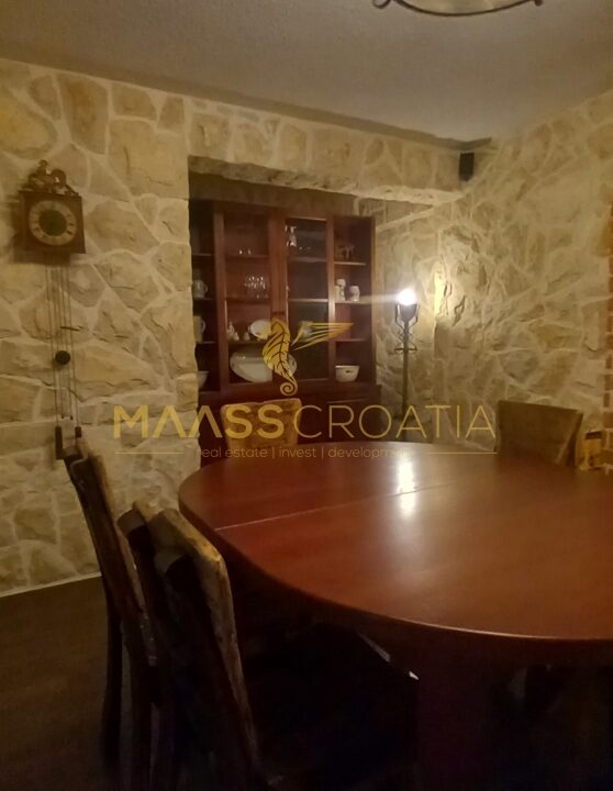 Anche il seminterrato, una rarità in Croazia, offre alcuni extra. C’è una sala fitness, dei ripostigli, un magazzino con una cantina che dovrebbe mandare in visibilio tutti i bevitori di vino e, infine, una cantina per feste con cucina, impianto musicale e un forno per barbecue in muratura!