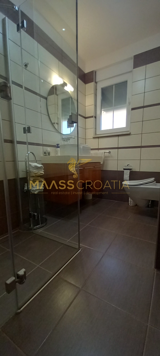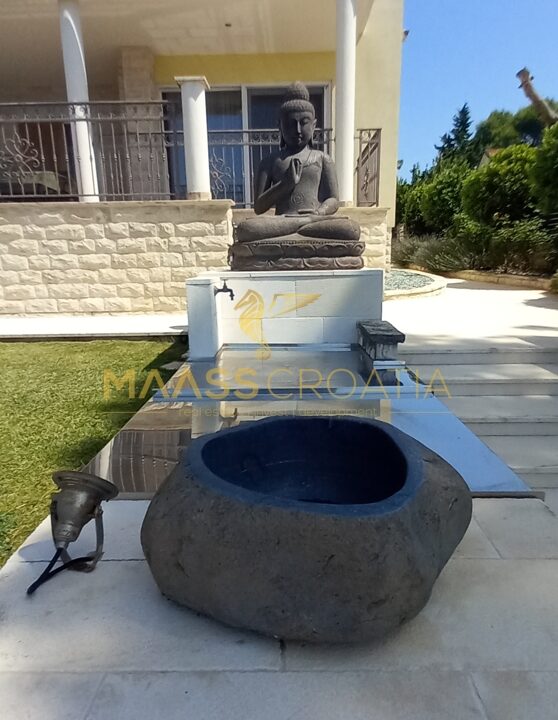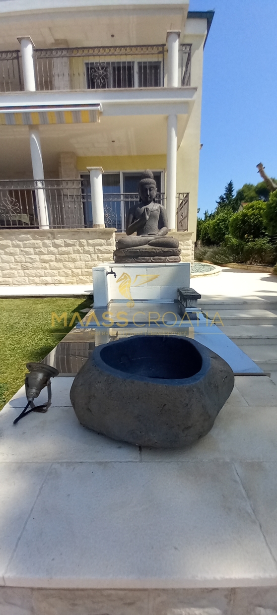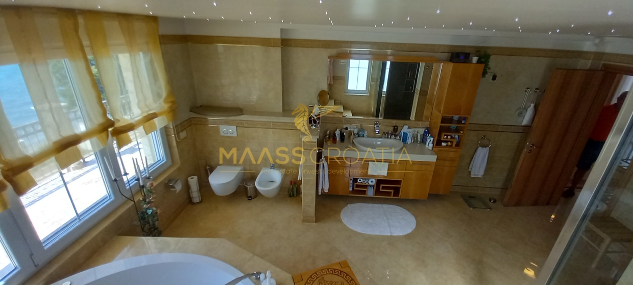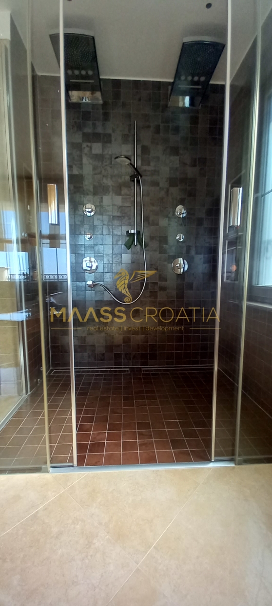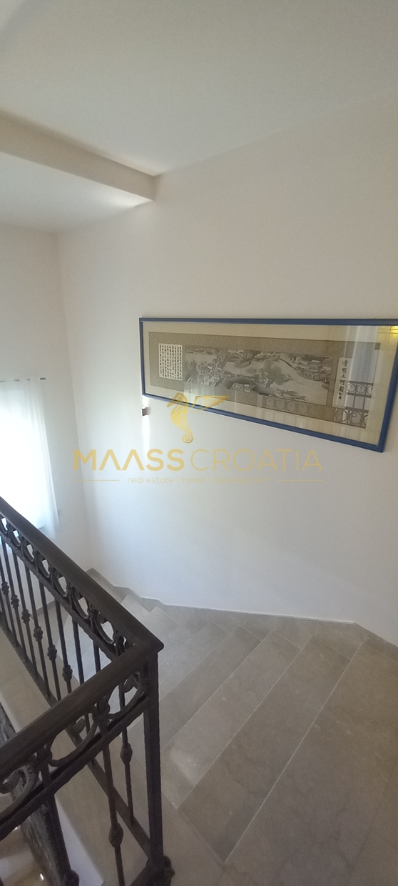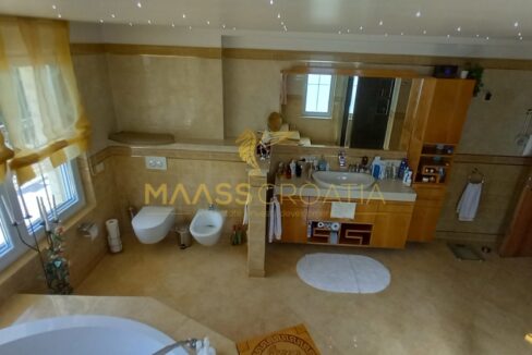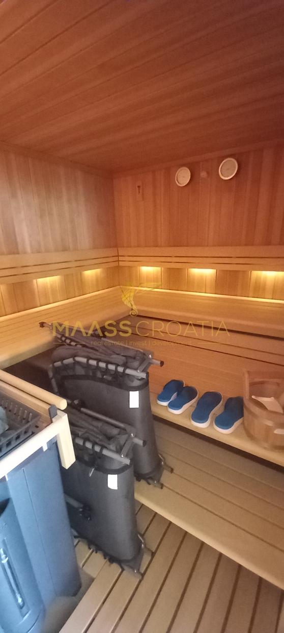Anche il seminterrato, una rarità in Croazia, offre alcuni extra. C’è una sala fitness, dei ripostigli, un magazzino con una cantina che dovrebbe mandare in visibilio tutti i bevitori di vino e, infine, una cantina per feste con cucina, impianto musicale e un forno per barbecue in muratura!