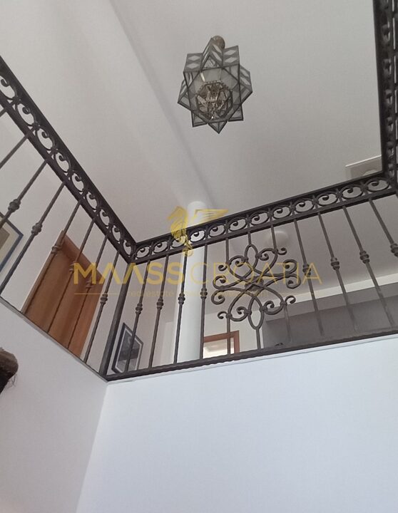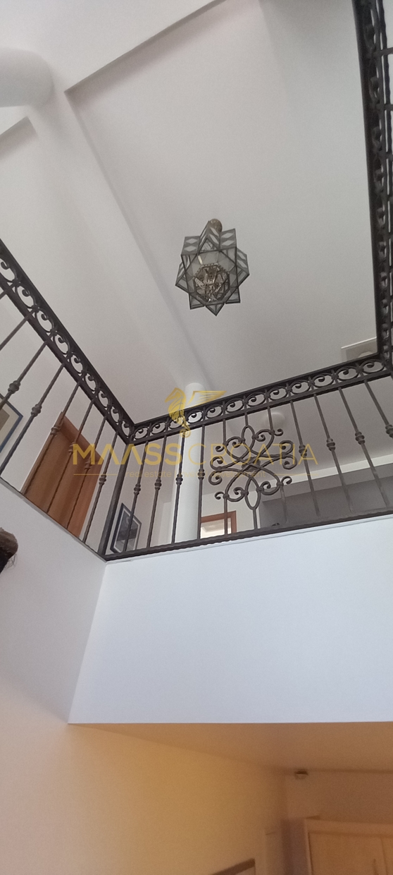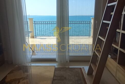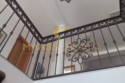 La scala conduce direttamente alla spaziosa galleria, che ospita anche l’imponente biblioteca con vista sul mare. Da qui si accede alle singole camere.