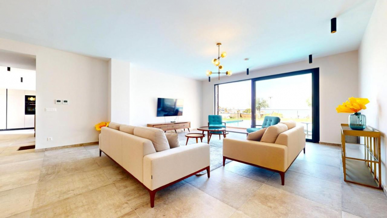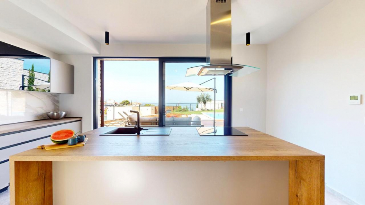 Gioiello in pietra bianca con piscina e vista panoramica sul mare a Novalja
