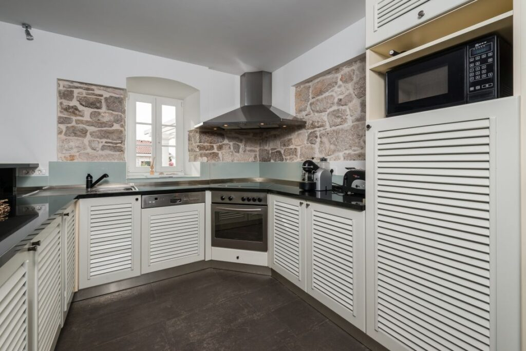 La proprietà è suddivisa in tre unità/tre case in pietra. La casa principale centrale si trova nel cuore della proprietà e si estende su due piani. Dispone di quattro camere da letto e quattro bagni. Al piano terra si trovano una cucina moderna e completamente attrezzata, una zona pranzo elegantemente arredata, un soggiorno elegante e un bagno moderno.