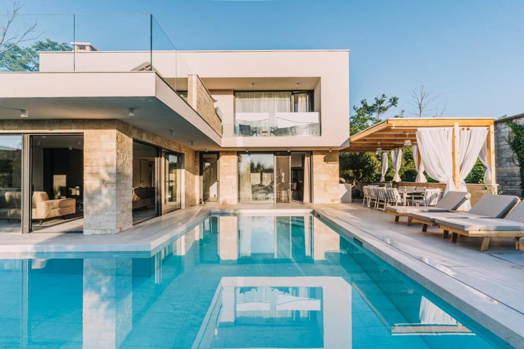 Su un terreno di 491 m² si trova un’area esterna ben curata con piscina e 290 m² di spazio abitativo.