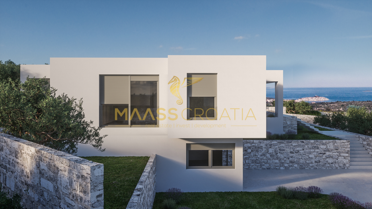 Vodice, ville in collina con spettacolare vista panoramica sul mare e sull'arcipelago di Vodice. Progettata in uno...